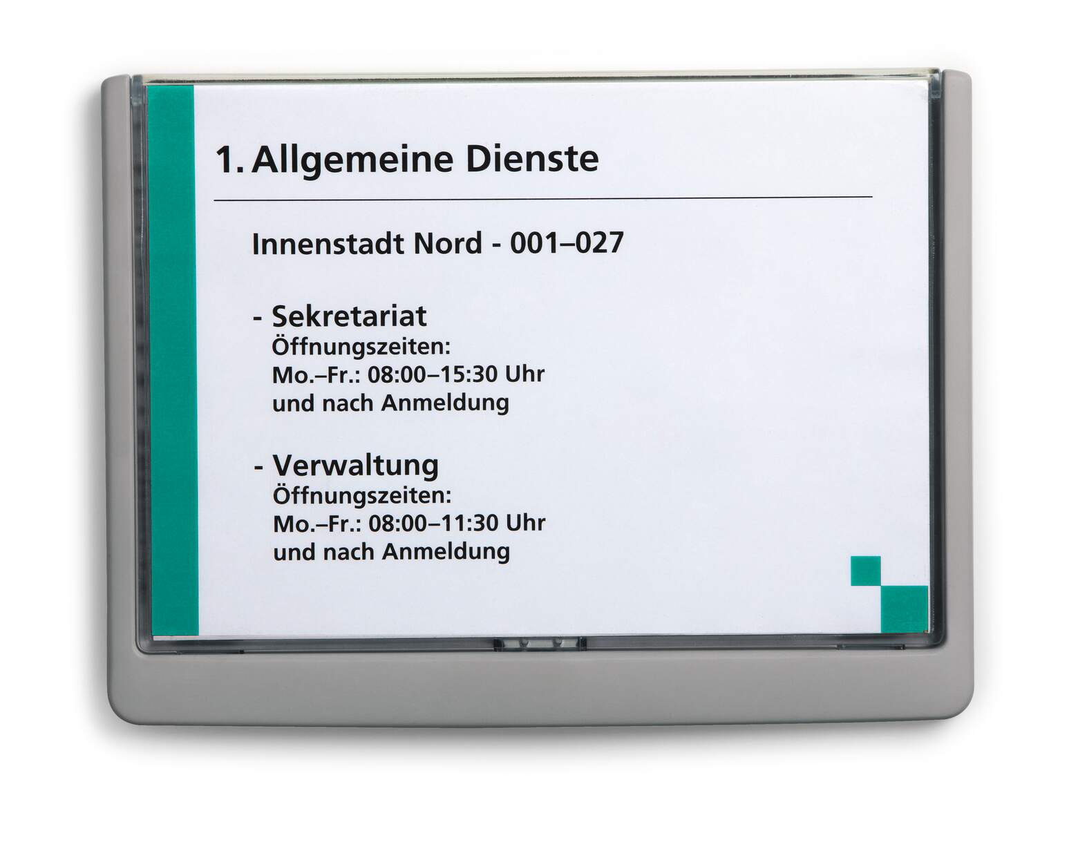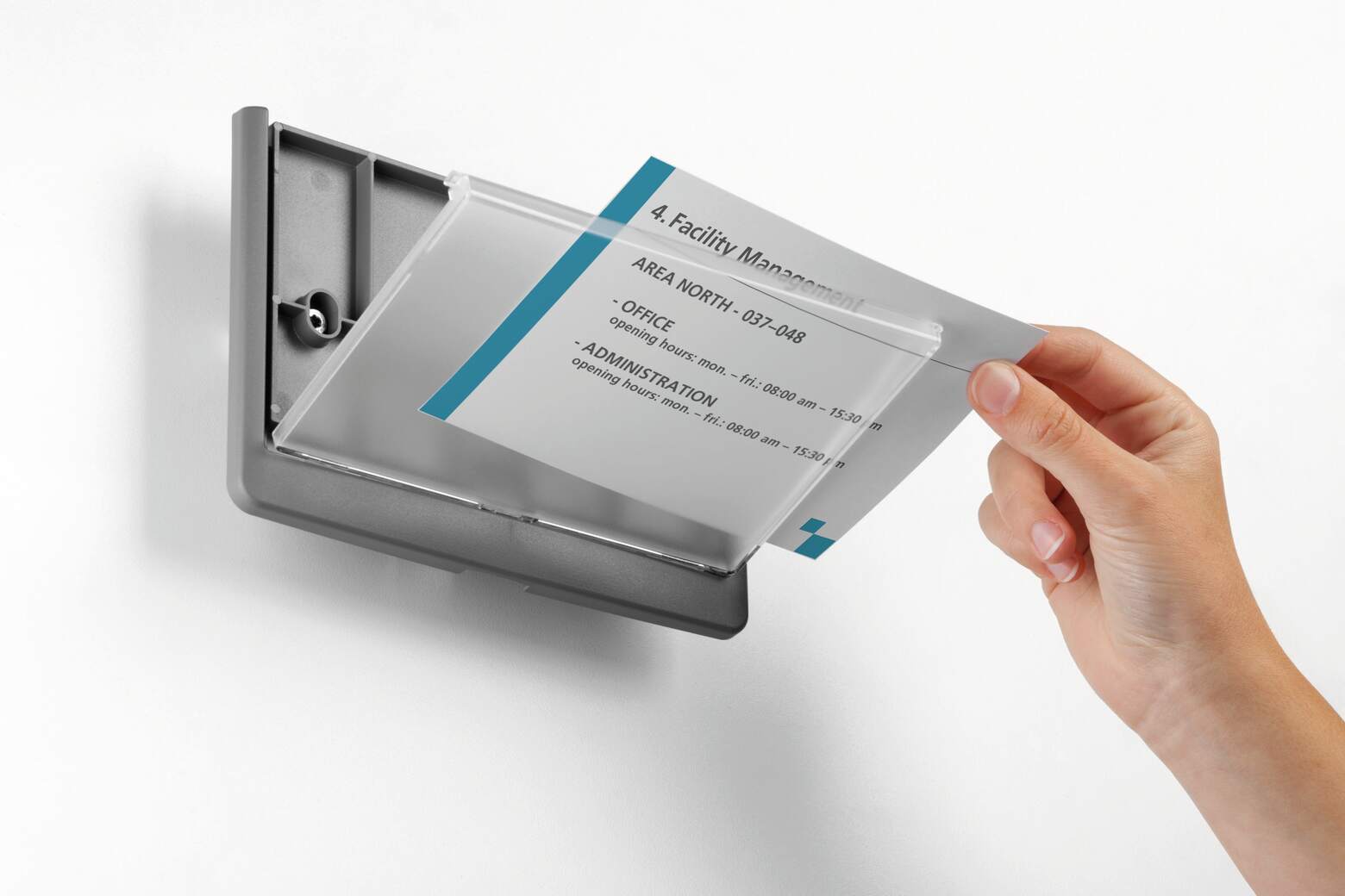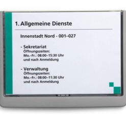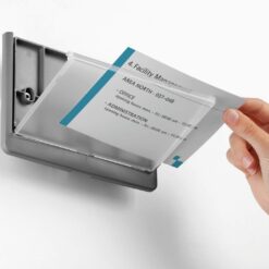 IHigh quality plastic door sign range, with pull-out view window for easy replacement of card inserts. Signs can be securely screwed or glued in place. Complete with card insert and simple assembly instructions. PC-printable inserts are available separately (product # 4850-4867). Free design software is available for download from www.durable-uk.com. Dimensions: 148,5 x 210 mm (H x W)* *size of inserts