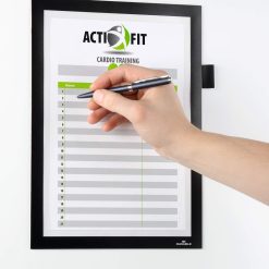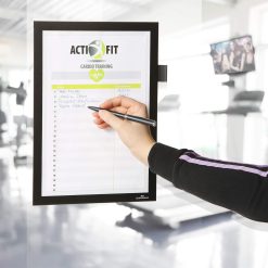 Παρουσιάστε πληροφορίες με υψηλής ποιότητας και επαγγελματικό τρόπο. Γρήγορη εισαγωγή και αντικατάσταση εγγράφων μέσω αρθρωτού μαγνητικού πλαισίου Προσαρμόζεται εύκολα σε λείες, σταθερές επιφάνειες χωρίς την ανάγκη εργαλείων και μπορεί να αφαιρεθεί ξανά, π.χ. από γυαλί Πεδία εφαρμογής: Για καθαρισμό ρόλων σε τουαλέτες, φόρμες εγγραφής εκδηλώσεων ή για συλλογή και τεκμηρίωση πληροφοριών, διαδικασίες εργασίας και υπηρεσίες όπως συντήρηση ή έλεγχοι ασφάλειας Τα έγγραφα μορφής A4 μπορούν να εγγραφούν απευθείας χωρίς να χρειάζεται να διπλώσετε το πλαίσιο πληροφοριών Κρατάει μέγ. 5 φύλλα 80 g/qm Θήκη για στυλό για όλα τα στυλό με κλιπ στερέωσης Αναγνωσιμότητα και από τις δύο πλευρές του γυαλιού χάρη στα 2 ένθετα Πανομοιότυπη εμφάνιση πλαισίου και από τις δύο πλευρές Για κατακόρυφα και οριζόντια σχήματα